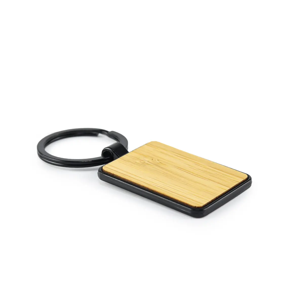 Rectangle Bamboo Metal Keychain