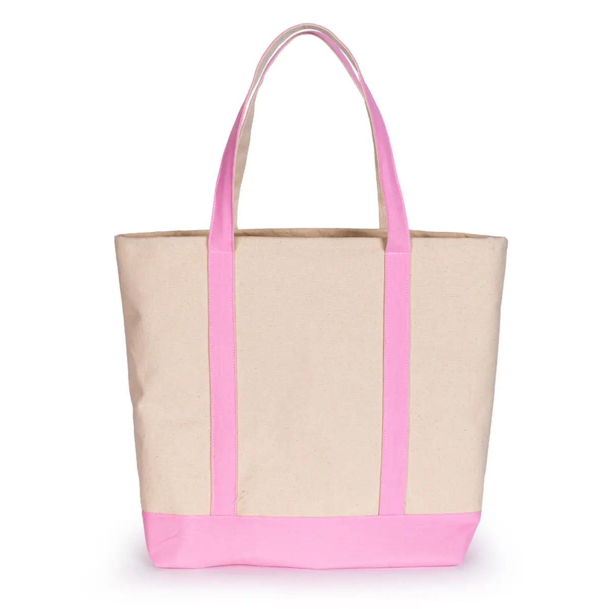 This beautifully designed canvas bags or tote bags blends functionality with fashion. Featuring a natural body with soft pink straps and base, it offers a stylish contrast for daily use. The bag includes an external slip pocket and an inner pocket, keeping essentials neatly organized. Great for gifting, shopping, or custom branding.